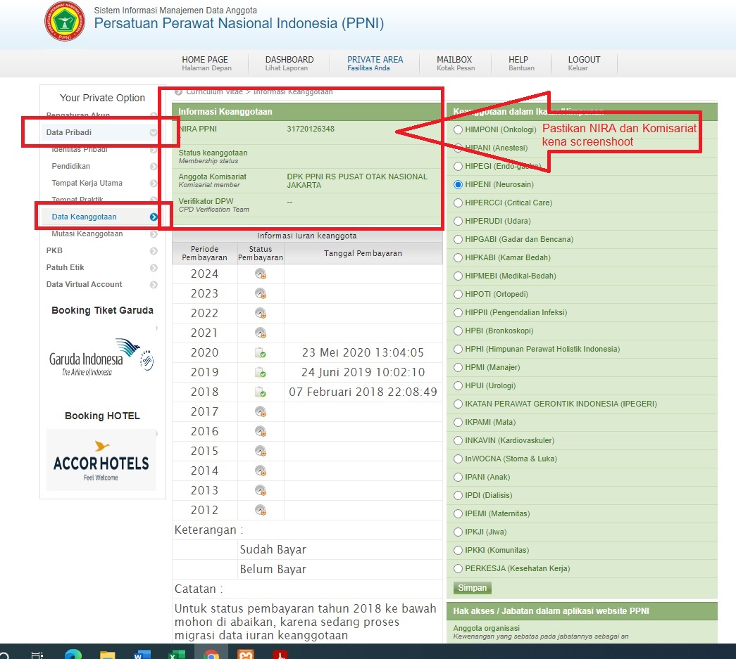 Mulai tahun 2021 Bukti bayar harus diambil dari screenshoot SIMK PPNI PUSAT karena perubahan ketentuan dari DPD PPNI JAKTIM,